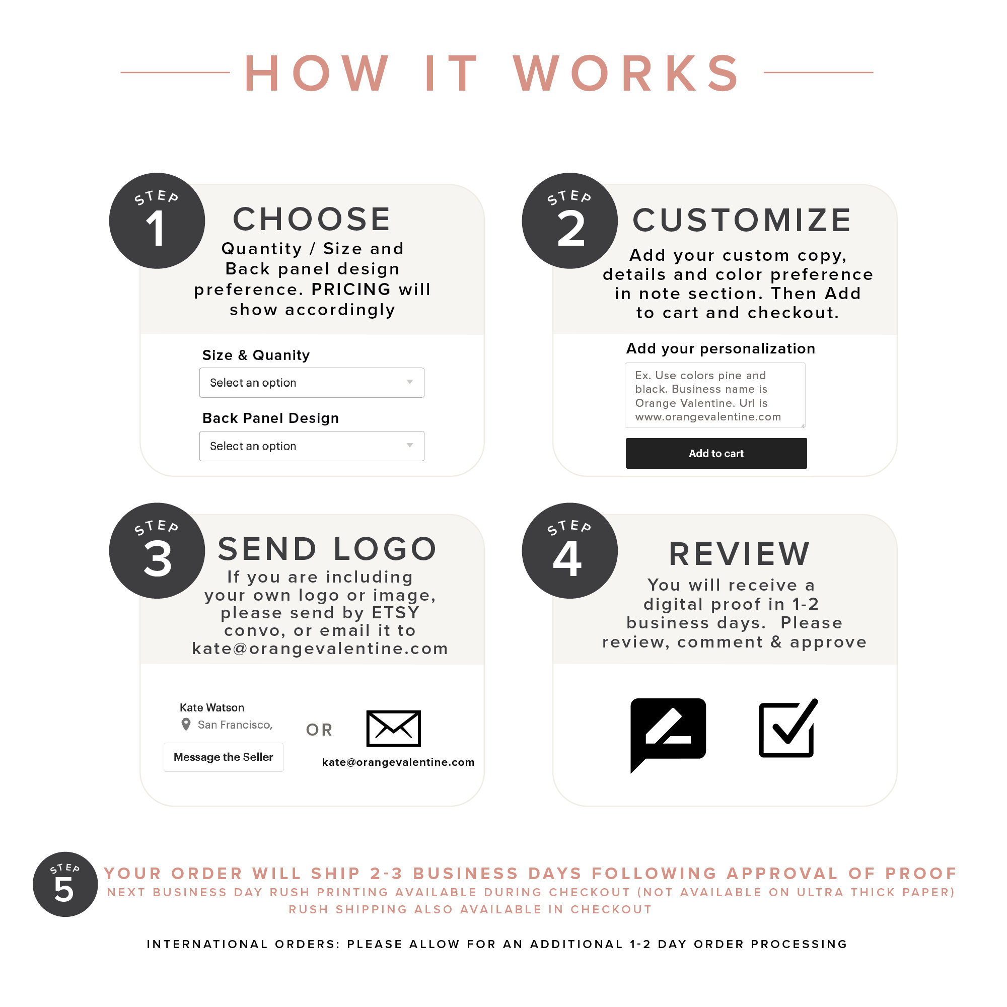 We are passionate about making great design and print easy and affordable for small businesses, makers and start-ups. You provide us with your custom details (and logo if you have one) and we customize the design, send it to you for approval, then print and ship. All with quick turnarounds, personal graphic design service, and premium paper & printing.